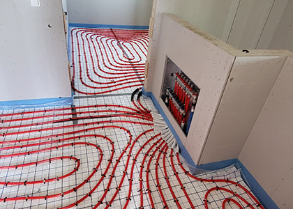 Ende März konnten alle Häuser erfolgreich fertiggestellt werden. Parallel dazu wurden umfangreiche Innenausbauarbeiten durchgeführt. Derzeit laufen in allen Gebäuden die Rohinstallationsarbeiten auf Hochtouren, und es wurde mit der Verlegung der Fußbodenheizung begonnen. In Kürze kann mit den Estricharbeiten gestartet werden.
