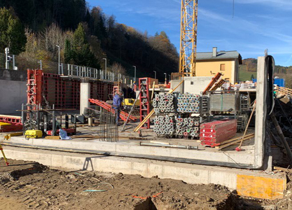 Noch im August wurde der Baugrubenaushub durchgeführt. Im Oktober konnten dann bereits alle Fundamentplatten betoniert werden. Bei der Stiege 1 ist auch bereist die Decke über dem Kellergeschoss vollständig betoniert. Für die Tiefgarage wurden alle Wände sowie Säulen fertiggestellt.