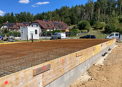 Nachdem im Juni das Streifenfundament erfolgreich umgesetzt wurde, konnte im August die Bodenplatte betoniert werden. Im Anschluss daran erfolgte die fachgerechte Herstellung der horizontalen Abdichtung. Damit sind alle wichtigen Grundlagen geschaffen.
